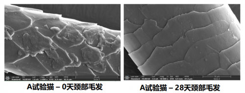 在科學(xué)實證、嚴控品質(zhì)的標準下,Solid Gold素力高與浙江大學(xué)教學(xué)動物醫(yī)院聯(lián)合發(fā)起28天素力高奶蓋魚油的飼喂效果跟蹤實驗。實驗通過浙大教學(xué)動物醫(yī)院官方平臺發(fā)起招募,吸引了來自江浙滬近30位養(yǎng)寵者報名參與,經(jīng)過篩選,最終20只貓咪參與實驗。參與貓咪分別在喂食第1天和28天參與體檢,在專業(yè)的顯微鏡檢與醫(yī)生感官檢測下,評估喂食奶蓋魚油28天后的毛發(fā)狀況改變。通過28天喂養(yǎng)效果對比,實驗證明100%受試貓咪的毛發(fā)得到不同程度改善,掉毛量顯著減少3倍,貓咪毛發(fā)的柔順度、強韌度均得到明顯改善,寵物擁有更加健康柔順的毛發(fā)。