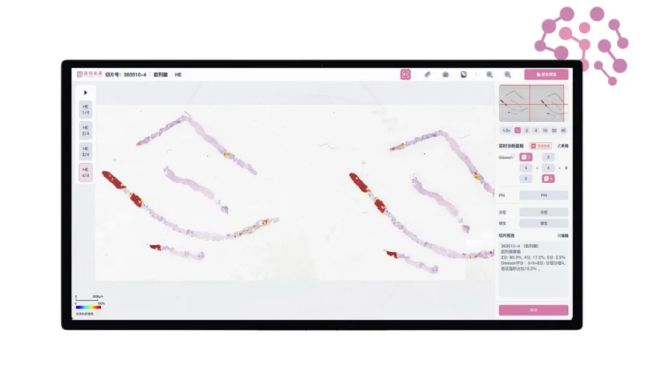 2024年10月,透徹未來發(fā)布Thorough Insights(透徹洞察)4.x——全球首個臨床應(yīng)用級病理人工智能大模型產(chǎn)品,采用十億級參數(shù)規(guī)模,并創(chuàng)新性地結(jié)合無監(jiān)督、弱監(jiān)督和有監(jiān)督學(xué)習(xí),為病理診斷提供準確、穩(wěn)定、全面、快速的人工智能解決方案。Thorough Insights覆蓋大多數(shù)組織學(xué)病理診斷場景,支持十余種高發(fā)腫瘤器官病理智能分析,精準定位癌變區(qū)域并自動完成疾病分型。在大型醫(yī)院的臨床病理應(yīng)用中,其敏感度接近100%,特異性超過94%,在中小型醫(yī)院的敏感度同樣接近100%,特異性超過90%。面對復(fù)雜、多變的診斷場景,該系統(tǒng)具備強大的適應(yīng)能力,成為醫(yī)生穩(wěn)定高效的輔助診斷工具。此外,在病理科的實際應(yīng)用中,Thorough Insights能夠在8小時內(nèi)分析超過1300張小標本切片或450張大標本切片,大幅提升病理科室的診斷效率,減輕醫(yī)生工作負擔(dān)。