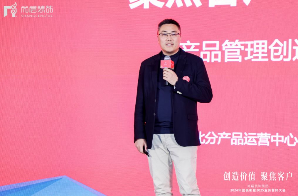 圍繞"中國(guó)高端住宅裝飾領(lǐng)導(dǎo)者"的定位目標(biāo),尚層裝飾集團(tuán)產(chǎn)品事業(yè)部總經(jīng)理李興濤在大會(huì)上宣布了五大核心舉措。