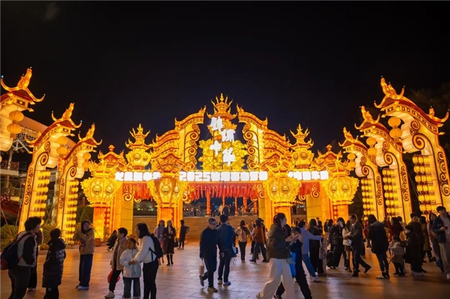 春節(jié)期間,深圳錦繡中華民俗村變身成一個(gè)如夢(mèng)似幻的國(guó)風(fēng)秀場(chǎng)——華夏綜藝史詩(shī)《龍鳳舞中華》煥新上演;錦繡喜粵燈會(huì)照亮新年吉慶;超人氣燈組《黑神話:悟空》令人驚嘆……特別是全新開(kāi)放的國(guó)風(fēng)主題區(qū)《錦繡盛市·夢(mèng)華錄》,更是重現(xiàn)了十大國(guó)風(fēng)美學(xué)生活??窗賾螂s技,逛勾欄瓦肆,品美酒茶藝,賞霓裳艷影……非遺技藝與現(xiàn)代科技的結(jié)合,讓游客沉浸在熱鬧繁華的宋代場(chǎng)景中流連忘返,一時(shí)不知今夕何夕。這樣的場(chǎng)景已遠(yuǎn)遠(yuǎn)超越了簡(jiǎn)單的表演,雖然講的是“老故事”,用的卻都是“新語(yǔ)言”。