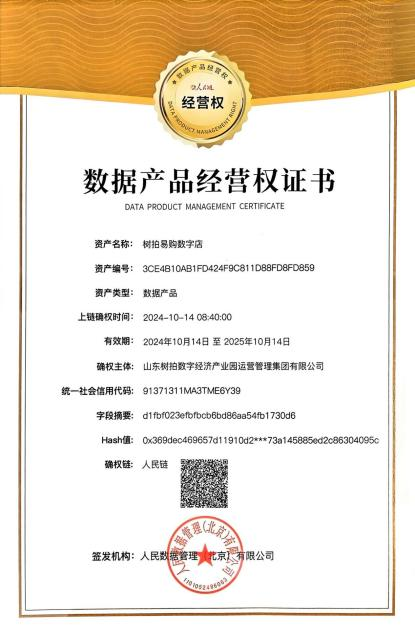 山東樹拍數(shù)字集團在數(shù)據(jù)領(lǐng)域?qū)崿F(xiàn)重大突破,成功斬獲人民網(wǎng)?人民數(shù)據(jù)頒發(fā)的《數(shù)據(jù)資源持有權(quán)證書》《數(shù)據(jù)加工使用權(quán)證書》《數(shù)據(jù)產(chǎn)品經(jīng)營權(quán)證書》,成為羅莊區(qū)首家開展數(shù)據(jù)確權(quán)登記的企業(yè)。這一里程碑事件意義非凡,它標(biāo)志著羅莊區(qū)企業(yè)在數(shù)據(jù)利用方面從數(shù)據(jù)資源化到數(shù)據(jù)資產(chǎn)化邁出了關(guān)鍵一步,為山東樹拍數(shù)字集團的發(fā)展提供了更堅實的數(shù)據(jù)基礎(chǔ)和戰(zhàn)略優(yōu)勢。