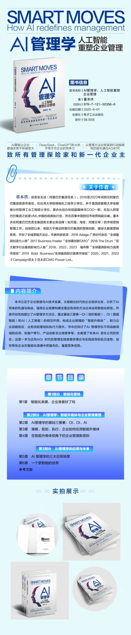 近日,一部聚焦企業(yè)智能化轉(zhuǎn)型的前沿著作《AI管理學(xué):人工智能重塑企業(yè)管理》由電子工業(yè)出版社正式出版發(fā)行。作者董本洪先生將其在世界級科技公司積累的多年管理智慧與前瞻性思考熔鑄在《AI管理學(xué)》中,為所有渴望在未來商業(yè)競爭中搶占先機的“管理探險家和新一代企業(yè)主”,提供了極具價值的思想指引。