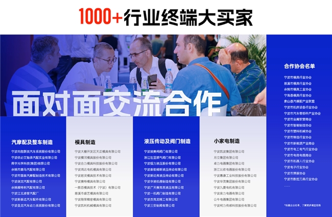 展會(huì)將重磅邀請(qǐng)汽摩配、模具、液壓傳動(dòng)、閥門制造、小家電制造等機(jī)床下游頭部終端企業(yè)到場(chǎng)參觀,數(shù)10家協(xié)會(huì)與數(shù)百家企業(yè)如均勝、舜宇光學(xué)、天正模具、君靈模具等需求現(xiàn)場(chǎng)對(duì)接,打造“頭部技術(shù)-頭部企業(yè)-頭部市場(chǎng)”的價(jià)值閉環(huán)。2025年CMES華機(jī)展|寧波國(guó)際機(jī)床展,或?qū)⒊蔀闄C(jī)加工企業(yè)的年度戰(zhàn)略剛需!