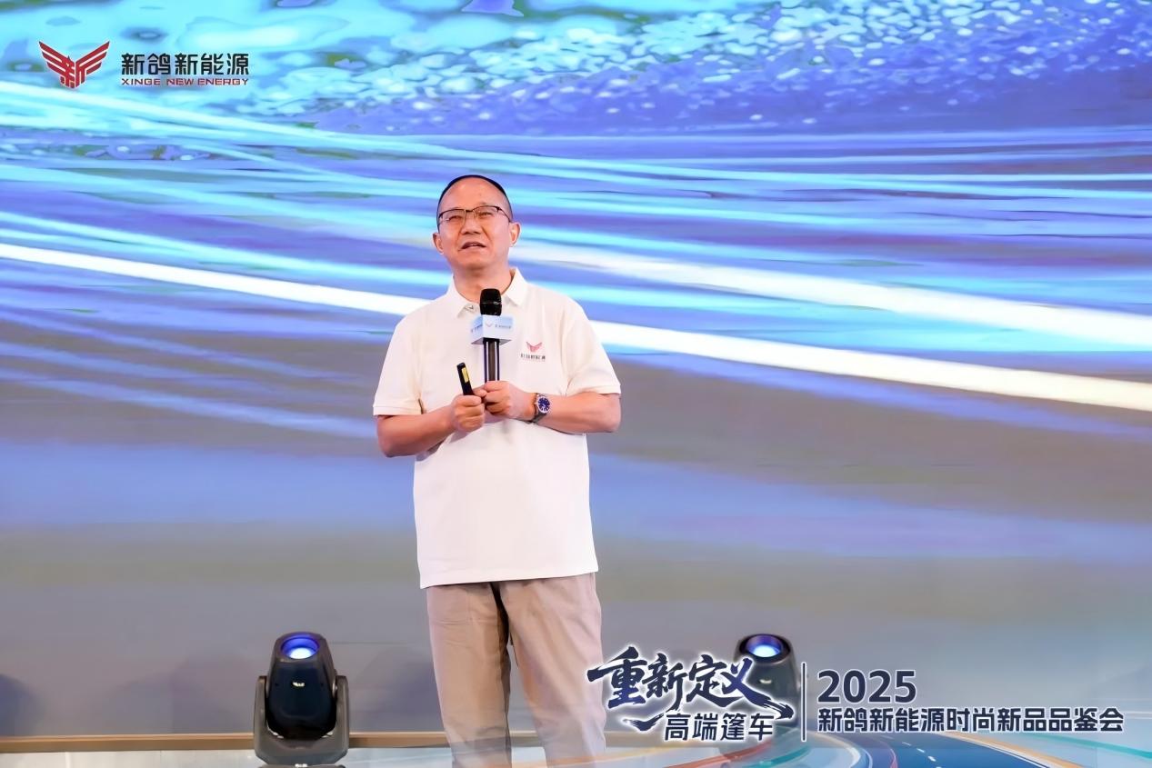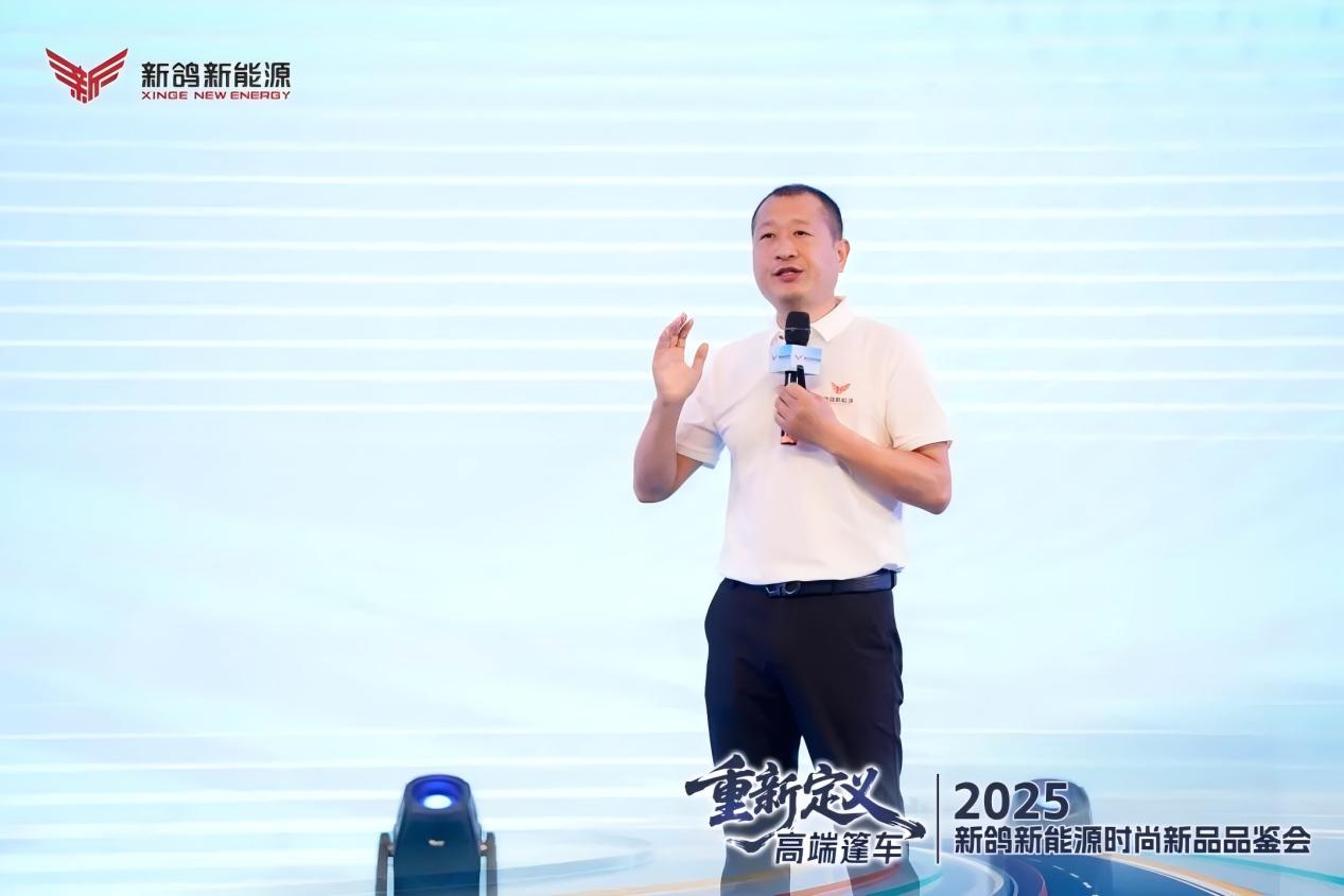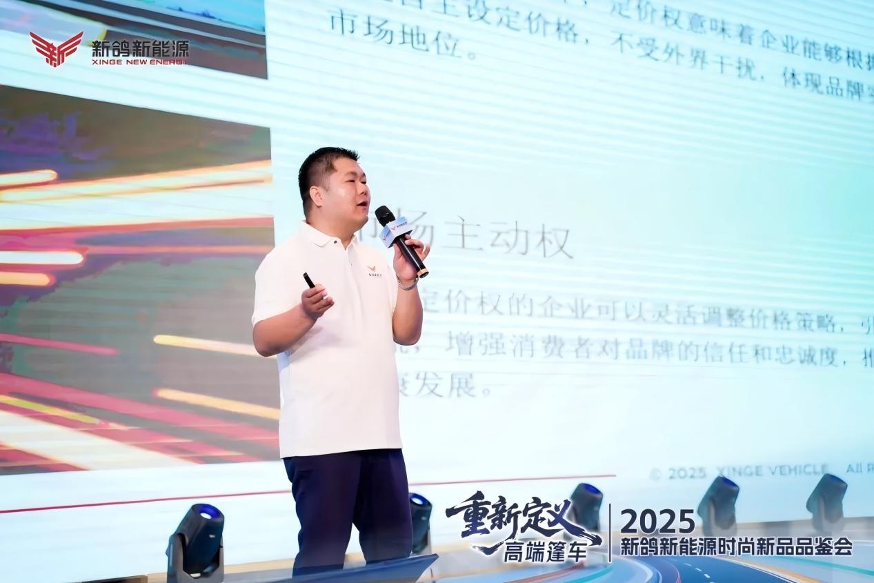 圖為新鴿副總經(jīng)理兼營銷中心主任鄭鳳志發(fā)布新鴿2025下半年營銷戰(zhàn)略