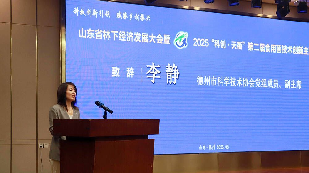 李靜在致辭中指出,林下經(jīng)濟(jì)是踐行“綠水青山就是金山銀山”理念、實(shí)現(xiàn)生態(tài)保護(hù)與農(nóng)民增收雙贏的綠色朝陽產(chǎn)業(yè)。她強(qiáng)調(diào),科技創(chuàng)新是驅(qū)動林下經(jīng)濟(jì)高質(zhì)量發(fā)展、推動鄉(xiāng)村全面振興的核心動力。 德州市科協(xié)將充分發(fā)揮橋梁紐帶作用,積極搭建連接科技界與企業(yè)界的“科創(chuàng)金橋”平臺,匯聚國家級、省級高層次專家資源,為德州林下經(jīng)濟(jì)尤其是食用菌產(chǎn)業(yè)的技術(shù)創(chuàng)新(包括“智慧菇艙”等前沿裝備應(yīng)用)和成果轉(zhuǎn)化提供強(qiáng)有力支撐,擦亮“科創(chuàng)·天衢”品牌,服務(wù)全市產(chǎn)業(yè)升級。她熱忱期盼專家們將創(chuàng)新事業(yè)和研究成果布局轉(zhuǎn)化到德州,推動科技與產(chǎn)業(yè)深度融合,實(shí)現(xiàn)互利共贏的“雙向奔赴”,共同繪就“產(chǎn)業(yè)興、生態(tài)美、百姓富”的鄉(xiāng)村振興壯美畫卷。