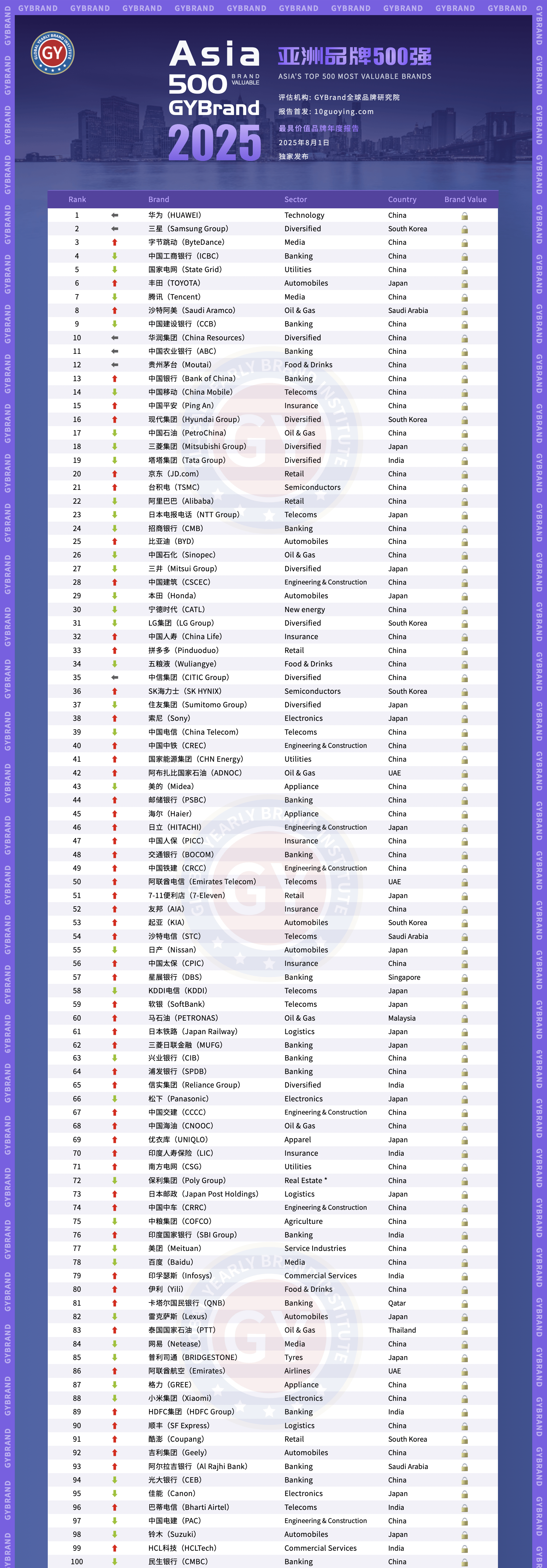 2025亞洲品牌價(jià)值500強(qiáng)完整名單一覽