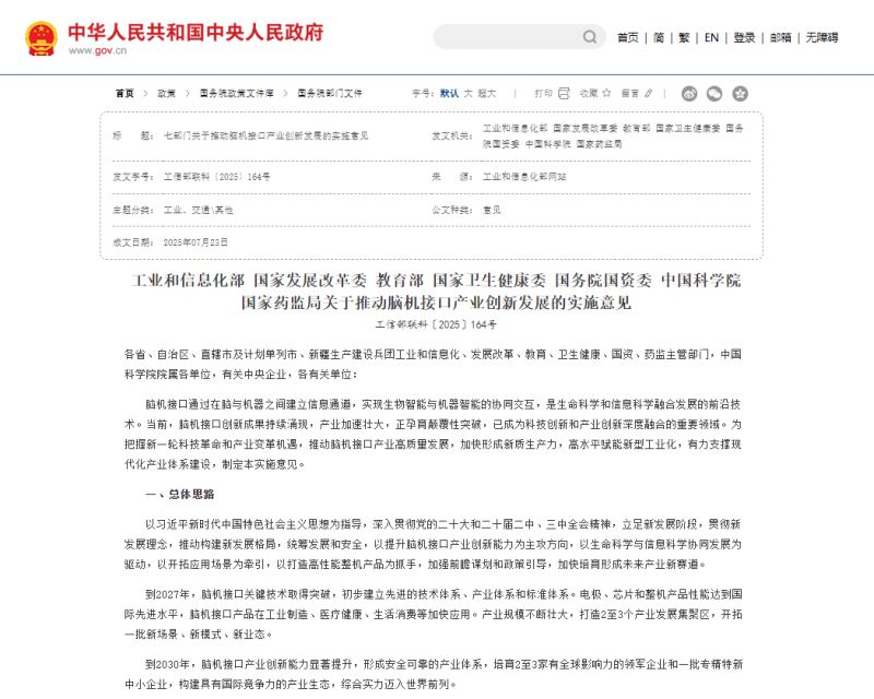 日前工業(yè)和信息化部、國家發(fā)展改革委等七部門聯(lián)合發(fā)布《關(guān)于推動腦機接口產(chǎn)業(yè)創(chuàng)新發(fā)展的實施意見》(下稱《意見》),首次將腦機接口納入國家未來產(chǎn)業(yè)重點方向。文件規(guī)劃了清晰的發(fā)展路線圖,并提出“加快植入式設(shè)備研發(fā)突破、推動非植入設(shè)備量產(chǎn)迭代”雙軌戰(zhàn)略。