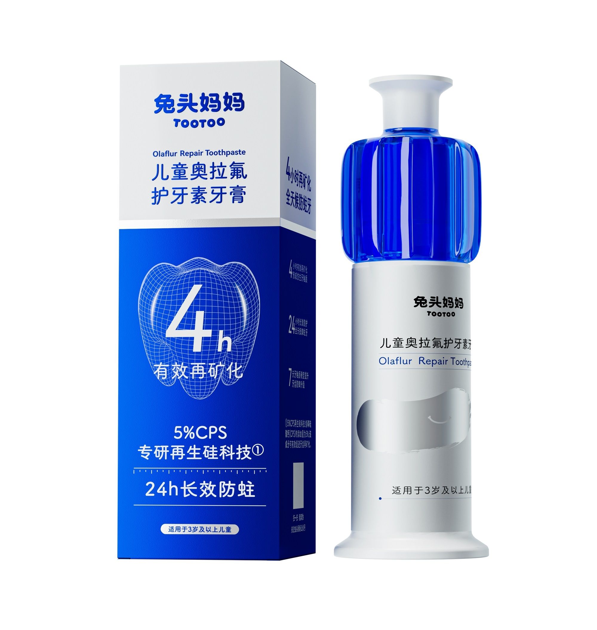 目前像上海九院、國(guó)內(nèi)高校研究所都認(rèn)可早期齲再礦化治療、牙釉質(zhì)磨損修復(fù)等,即讓已經(jīng)脫礦的牙釉質(zhì)重新生長(zhǎng)礦物,再次礦化,恢復(fù)牙齒的硬度和結(jié)構(gòu),從而終止或消除早期齲損。在同一治療思路下,兒童口腔健康護(hù)理品牌兔頭媽媽上新護(hù)牙素2.0,在具有修護(hù)功效的生物性原料上取得突破,升級(jí)為再生硅成分,相較于上一代生物活性玻璃成分,修護(hù)牙釉質(zhì)更快、更多、更硬、更牢。