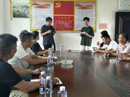 次日實(shí)踐隊(duì)乘船前往黃灣村。在黃灣村書(shū)記林以情的幫助下,隊(duì)員們對(duì)當(dāng)?shù)貪O民進(jìn)行入戶問(wèn)卷調(diào)查,隊(duì)員們了解到村民們熟練掌握了大黃魚(yú)與龍須菜養(yǎng)殖技能,依托廣闊的海域資源,在2020年到2023年間,超半數(shù)村民通過(guò)養(yǎng)殖實(shí)現(xiàn)收入的大幅增收。但如今,水質(zhì)下降、極端天氣致大黃魚(yú)產(chǎn)量不穩(wěn)。了解到育苗以及養(yǎng)殖的流程和風(fēng)險(xiǎn)后,隊(duì)員們發(fā)揮專業(yè)優(yōu)勢(shì),努力打破漁民對(duì)保險(xiǎn)的偏見(jiàn),呼吁漁民通過(guò)保險(xiǎn)手段,減少損失并維護(hù)自身財(cái)產(chǎn)與安全權(quán)益,預(yù)防風(fēng)險(xiǎn)。宣講會(huì)后村民表示:“現(xiàn)在知道了原來(lái)還有臺(tái)風(fēng)險(xiǎn)這類保險(xiǎn)??!”當(dāng)日下午,隊(duì)員們登上海上魚(yú)排,觀察漁民投喂大黃魚(yú),交流中學(xué)習(xí)到環(huán)保魚(yú)排、科學(xué)養(yǎng)殖技巧等寶貴經(jīng)驗(yàn)。