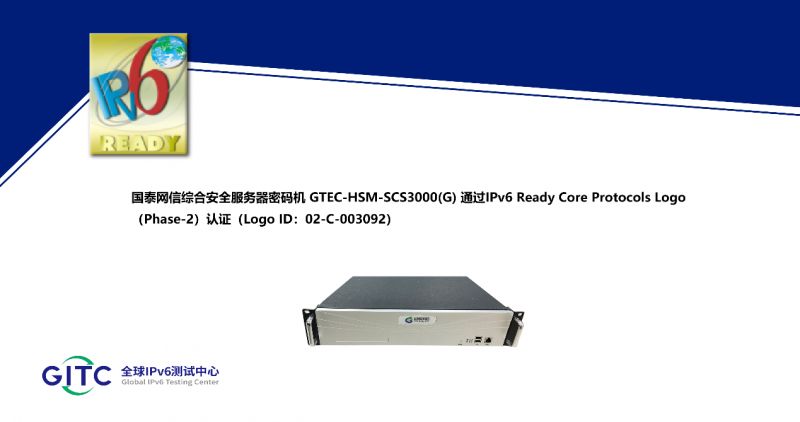 近日,北京國泰網(wǎng)信科技股份有限公司旗下綜合安全服務(wù)器密碼機GTEC-HSM-SCS3000(G)在下一代互聯(lián)網(wǎng)國家工程中心-全球IPv6測試中心正式通過IPv6 Ready核心協(xié)議Phase-2測試,并榮獲由國際組織IPv6 Forum頒發(fā)的IPv6 Ready Logo Phase-2認(rèn)證證書(Logo ID:02-C-003092)。這標(biāo)志著上述產(chǎn)品的IPv6核心協(xié)議實現(xiàn)已全面符合IETF RFC相關(guān)標(biāo)準(zhǔn),其一致性和互通性得到了權(quán)威驗證。