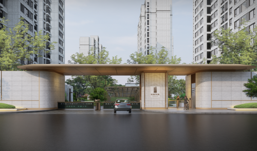 主入口大門模塊化設計,將車行、人行、門衛(wèi)安防、智能快遞點融合在景觀設計的理念中,功能與美感高度融合,打造充滿儀式感的歸家第一站。