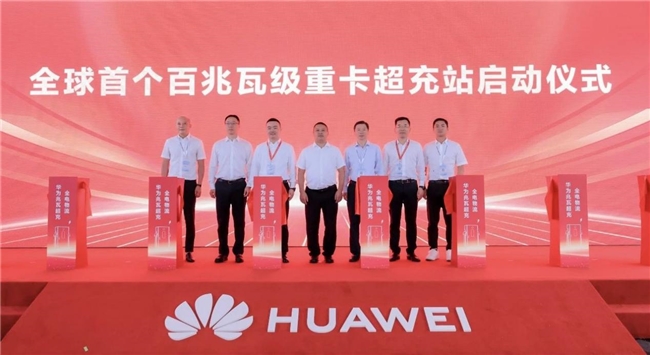 基于華為兆瓦超充打造的全球首個(gè)百兆瓦級(jí)重卡超充站啟動(dòng)儀式