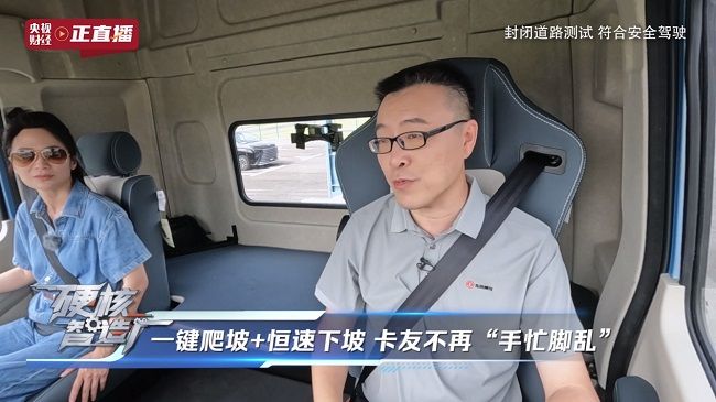 展新副總經(jīng)理親自駕駛,帶領(lǐng)央視主持人體驗(yàn)了乘龍翼威5的高速行駛、“一鍵爬坡+恒速下坡”功能以及強(qiáng)化壞路測(cè)試等多項(xiàng)性能,讓觀眾直觀領(lǐng)略到乘龍翼威5的強(qiáng)勁動(dòng)力與卓越智能制動(dòng)控制表現(xiàn)。