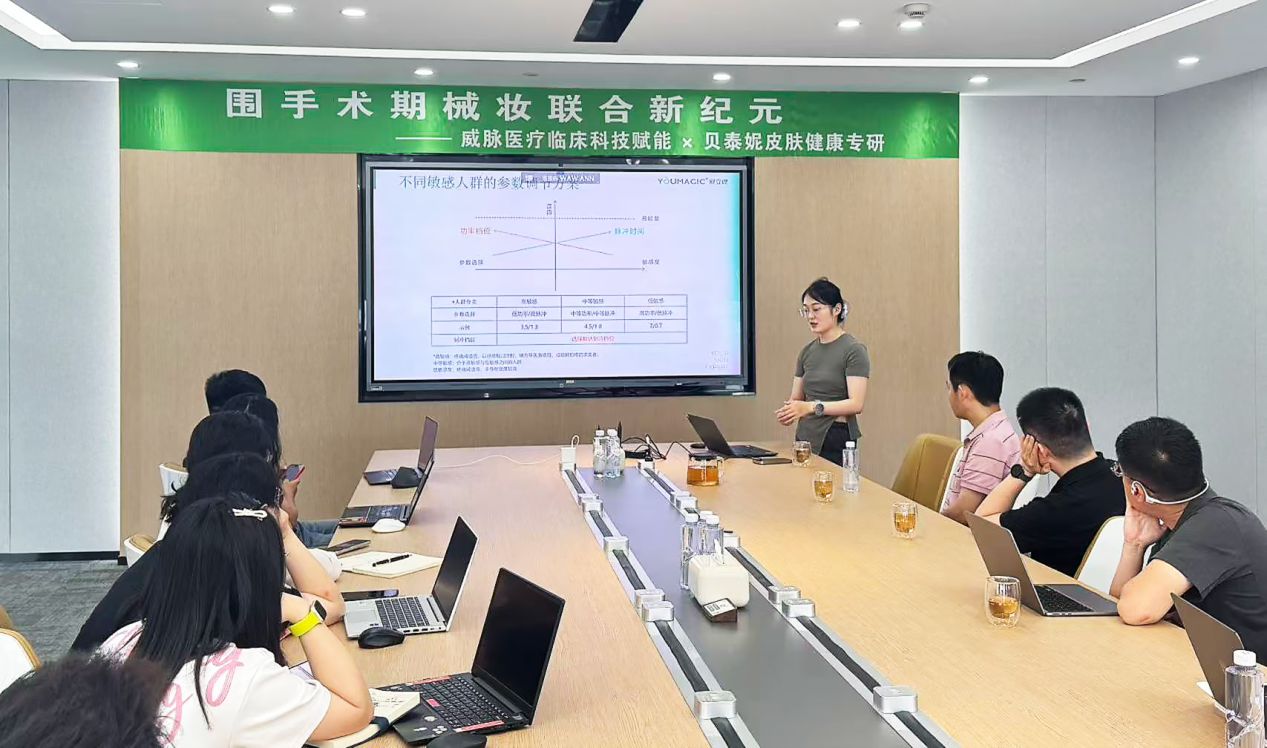 合作開展后,威脈醫(yī)療的專家團(tuán)隊(duì)隨即進(jìn)行了專業(yè)技術(shù)賦能,系統(tǒng)分享了舒立緹的標(biāo)準(zhǔn)化操作打法,并深入闡釋了產(chǎn)品能量密度調(diào)節(jié)與精準(zhǔn)把控的關(guān)鍵技術(shù)細(xì)節(jié)。還特別針對(duì)高、中、低不同敏感等級(jí)的膚質(zhì),給出了精細(xì)化的參數(shù)調(diào)節(jié)參考,確保雙方合作能為各類肌膚帶來個(gè)性化、安全且高效的治療體驗(yàn)。