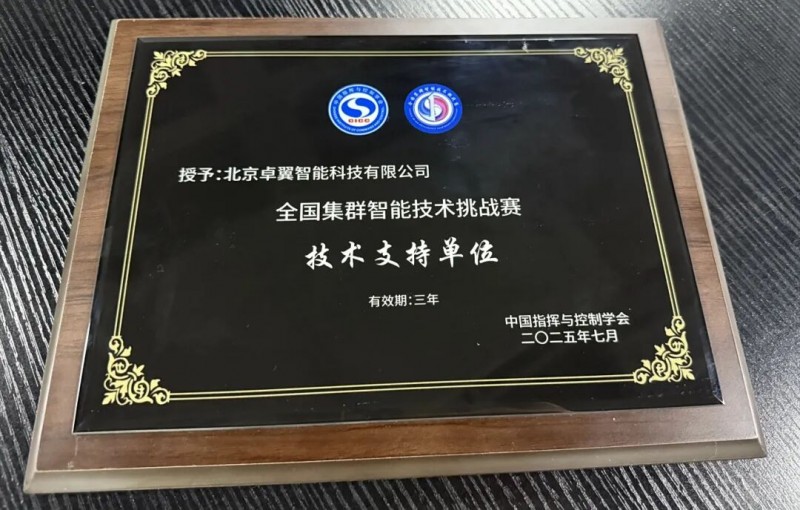 會(huì)議期間舉行了隆重的授牌儀式,中國指揮與控制學(xué)會(huì)宋鵬副秘書長和董希旺副秘書長分別為本次挑戰(zhàn)賽的技術(shù)支持單位、各分賽道承辦單位授牌。卓翼智能榮膺“全國集群智能技術(shù)挑戰(zhàn)賽-技術(shù)支持單位”稱號(hào)。這一殊榮充分體現(xiàn)了中國指揮與控制學(xué)會(huì)對我司在集群智能領(lǐng)域的技術(shù)積累與賽事服務(wù)綜合保障能力的充分肯定。卓翼智能表示,將以此為契機(jī),持續(xù)深化與各承辦單位的協(xié)同合作,全力保障本屆挑戰(zhàn)賽高水平、高質(zhì)量舉辦。