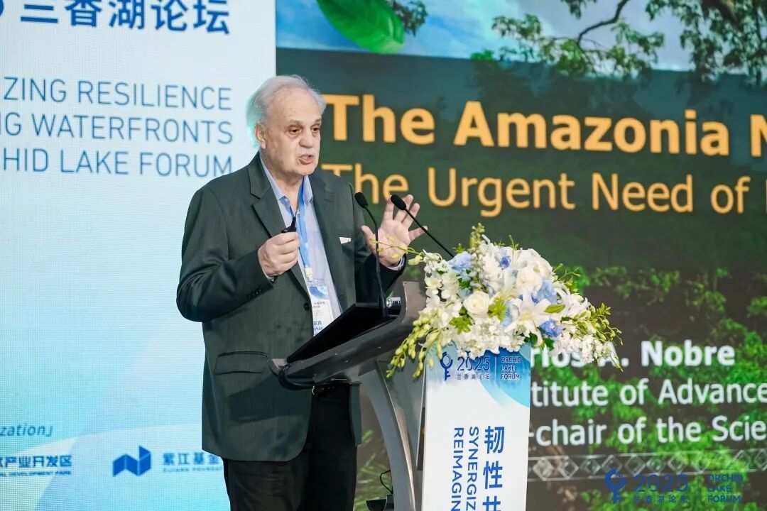 來自巴西的著名氣候?qū)W家 Carlos Nobre 教授在其主題演講中,聚焦亞馬遜雨林面臨的臨界點挑戰(zhàn),指出亞馬遜不僅是區(qū)域生態(tài)系統(tǒng),更是全球氣候平衡的重要支撐。若森林退化持續(xù),其對碳循環(huán)、水循環(huán)及生物多樣性的破壞將帶來全球性風險。聚焦亞馬遜雨林的臨界點與全球氣候風險,Nobre教授詳細剖析了森林退化、非法采伐、金礦開采等對生態(tài)系統(tǒng)的威脅,強調(diào)雨林對全球水循環(huán)和碳儲存的關(guān)鍵作用。呼吁各國建立“自然本位”的解決方案,將創(chuàng)新與社區(qū)實踐結(jié)合,避免生態(tài)系統(tǒng)不可逆轉(zhuǎn)的損失。
