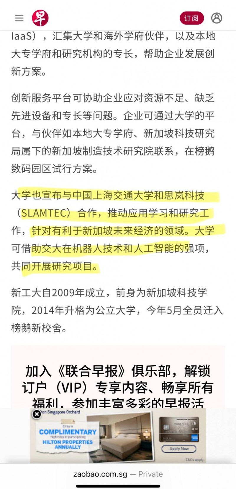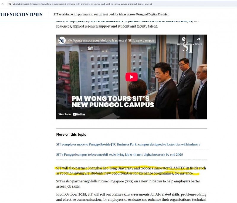 此次新加坡理工大學(xué)新校區(qū)的正式啟用以及新加坡理工大學(xué)、上海交大與思嵐科技的三方合作引發(fā)了廣泛關(guān)注,海峽時報(bào)(The Straits Times)、《聯(lián)合早報(bào)》等多家新加坡頭部媒體均在頭版頭條對本次合作進(jìn)行了重點(diǎn)報(bào)道。
