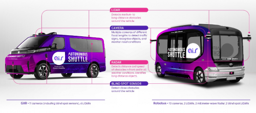 Ai.R車隊(duì)將采用文遠(yuǎn)知行的兩款產(chǎn)品:可坐5名乘客的Robotaxi GXR與可坐8名乘客的Robobus。這兩款產(chǎn)品均已通過新加坡嚴(yán)格的Milestone 1(M1)認(rèn)證,是首批獲得該認(rèn)證的專為榜鵝服務(wù)的自動(dòng)駕駛車輛。