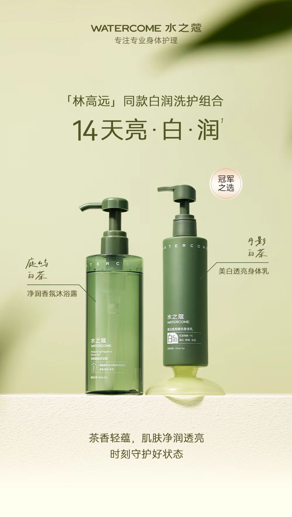 作為乒乓賽場(chǎng)上的“反手劍客”,林高遠(yuǎn)此次攜手水之蔻,為用戶推出解決身體肌膚干燥、暗沉、敏感等問(wèn)題的“必殺技”——白潤(rùn)洗護(hù)組合:白茶凈潤(rùn)沐浴露和美白身體乳3.0。前者凈潤(rùn)透亮肌膚,茶香輕蘊(yùn),情緒拉滿;后者擁有美白特證,以“14天亮白潤(rùn)”的硬核功效備受好評(píng)。兩者組合,將為用戶提供東方茶香的療愈時(shí)刻,帶來(lái)?yè)Q季保濕和秋冬季加速反白美白的驚喜蛻變。