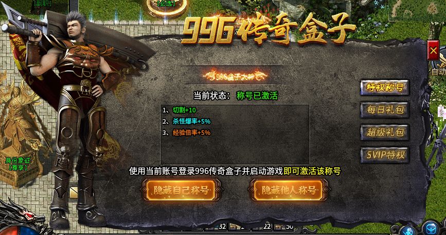現(xiàn)在下載996傳奇盒子搜索“犇牛傳奇”即可體驗,使用盒子登錄,還可免費獲得996傳奇大神稱號,每日領(lǐng)取豐富的禮包福利,助力贏在起跑線。