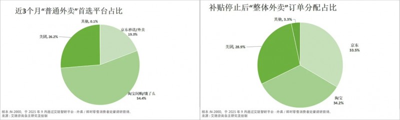 艾瑞咨詢最新調(diào)研數(shù)據(jù)顯示,在補貼完全停止的市場環(huán)境下,整體外賣市場的用戶選擇呈現(xiàn)清晰的“三分天下”局面。補貼褪去后,34.2%的消費者選擇留在淘寶閃購下單,33.5%的用戶選擇留在京東外賣,28.9%的用戶選擇美團,市場格局清晰且均衡,外賣行業(yè)“三分天下”的格局已基本確定,未來市場將難現(xiàn)單一平臺壟斷的“絕對龍頭”局面。