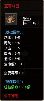 還有像對boss有固傷的吊墜、減免傷害的勛章、增加經(jīng)驗倍數(shù)的斗笠,也都是合成大師的業(yè)務(wù)范圍,一旦合成了最終的至尊斗笠,經(jīng)驗獲取速度能增加到2.5倍!