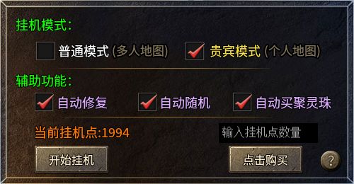 當(dāng)然,升級的捷徑不光一種,在盟重主城可以找到一個掛機練級NPC,可以選擇“普通但人比較多”的普通模式或者“扣掛機點數(shù)但尊貴獨享”的貴賓模式,也能利用每日任務(wù)獲取的掛機點數(shù)和聚靈珠去享受美美升級的爽快。