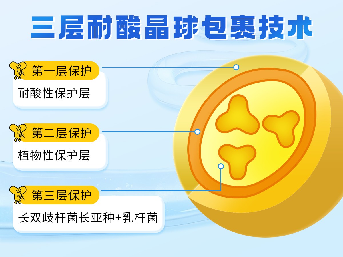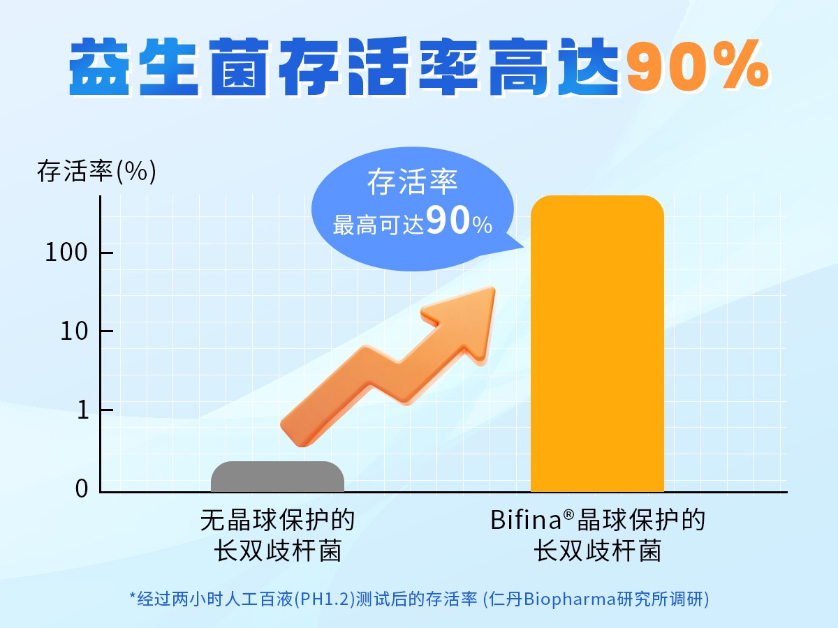 森下仁丹Bifina?晶球益生菌是國(guó)藥控股星鯊制藥(廈門(mén))有限公司從日本引進(jìn)的明星產(chǎn)品,其核心優(yōu)勢(shì)在于特研“三層耐酸晶球包裹技術(shù)”,將益生菌牢牢包裹在晶球顆粒中,保護(hù)活性益生菌免受胃酸侵蝕,順利抵達(dá)腸道發(fā)揮作用。經(jīng)模擬胃酸環(huán)境測(cè)試驗(yàn)證,益生菌存活率高達(dá)90%[4]。
