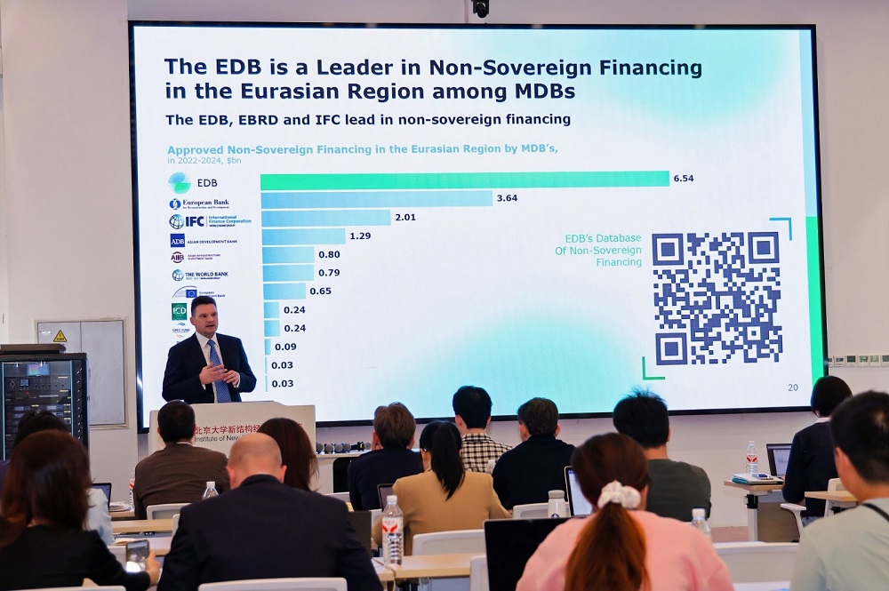 9月25日,歐亞開發(fā)銀行(Eurasian Development Bank, EDB)董事會主席尼古拉·波德古佐夫(Nikolay Podguzov)應(yīng)北京大學(xué)新結(jié)構(gòu)經(jīng)濟(jì)學(xué)研究院邀請發(fā)表演講。 他的報(bào)告主題聚焦于多邊開發(fā)銀行(MDB)的作用與未來,這些銀行每年向全球經(jīng)濟(jì)投資約2000億美元。