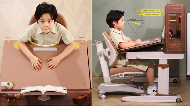 防趴桌:小C口設(shè)計(jì),桌面延伸7cm,為孩子找到的最舒適的支撐點(diǎn),背自然挺直,你不用再嘮叨;