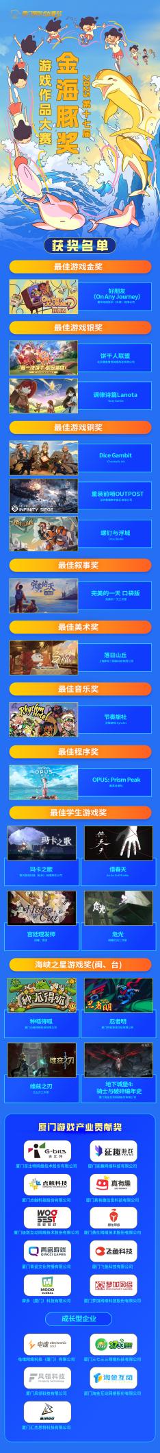 2025年10月31日上午,由廈門市人民政府主辦,廈門國(guó)際動(dòng)漫節(jié)組委會(huì)承辦,廈門信息集團(tuán)創(chuàng)新軟件園管理公司等單位協(xié)辦的第十七屆“金海豚獎(jiǎng)”頒獎(jiǎng)儀式在廈門集美成功舉辦。本屆大賽聚焦動(dòng)漫、游戲、虛擬現(xiàn)實(shí)(VR)三大核心賽道,吸引了來自全球50多個(gè)國(guó)家和地區(qū)的數(shù)千件優(yōu)秀作品參與角逐。包含《哪吒之魔童鬧?!贰妒佚堈摺贰稌r(shí)間之子》在內(nèi)的72部動(dòng)漫作品和18部游戲作品、18部VR作品脫穎而出,摘奪獎(jiǎng)項(xiàng)!