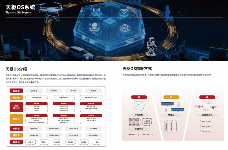卓翼飛思以“集群智能開發(fā)平臺”與“天樞OS系統”為核心支柱,構建起集群智能領域“研發(fā)-部署-生態(tài)”一體化的戰(zhàn)略能力體系,二者深度融合,形成從關鍵技術研發(fā)到系統級部署、再到產業(yè)生態(tài)構建的全鏈路閉環(huán),持續(xù)推動無人系統向規(guī)?;?、自主化與智能化發(fā)展。