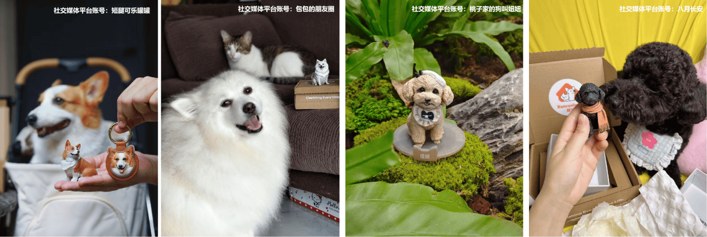記錄下愛寵的可愛瞬間是每位養(yǎng)寵人士的心愿,實體手辦讓這些溫情瞬間成為可觸碰、常伴左右的情感載體。一位定制了寵物掛件的鏟屎官狗叔(化名)表示:“寵物從不是‘寵物',而是實打?qū)嵉募胰?,我希望能把我的‘孩子’時刻帶在身邊?!?在社交媒體上,“終于可以把它隨身帶著了”“想隨時隨地看看它”等評論,也印證了這一不斷增長的情感消費新趨勢,技術(shù)最終需要服務于最原始的情感需求。