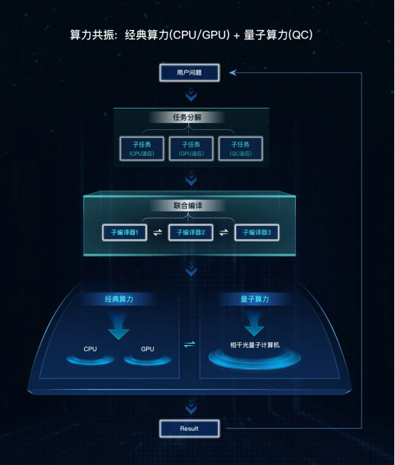 本項目計劃在國家超級計算成都中心的傳統(tǒng)超級計算機基礎上,引入玻色量子自研的相干光量子計算機,并聯(lián)合電子科技大學、西南民族大學的高??蒲泻献骰锇?,共同打造一個能夠在常溫環(huán)境下穩(wěn)定運行的量子-經(jīng)典融合算力硬件平臺。該平臺將具備“經(jīng)典算力+量子算力”的“量超融合”創(chuàng)新架構,能夠滿足不同規(guī)模和復雜度的計算需求,實現(xiàn)經(jīng)典算力與量子算力的優(yōu)勢互補。
