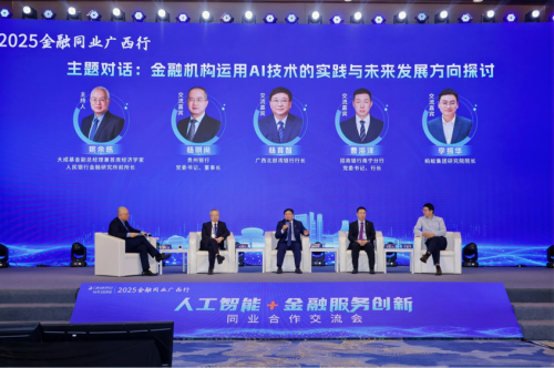 在主題對話環(huán)節(jié),貴州銀行黨委書記、董事長楊明尚,廣西北部灣銀行行長楊育智,招商銀行南寧分行黨委書記、行長曹海洋,螞蟻集團研究院院長李振華等嘉賓圍繞 “金融機構運用AI技術的實踐與未來發(fā)展方向探討”展開深入對話、交流,為金融賦能廣西打造面向東盟的金融開放門戶、服務地方經(jīng)濟高質量發(fā)展提供創(chuàng)新思路。