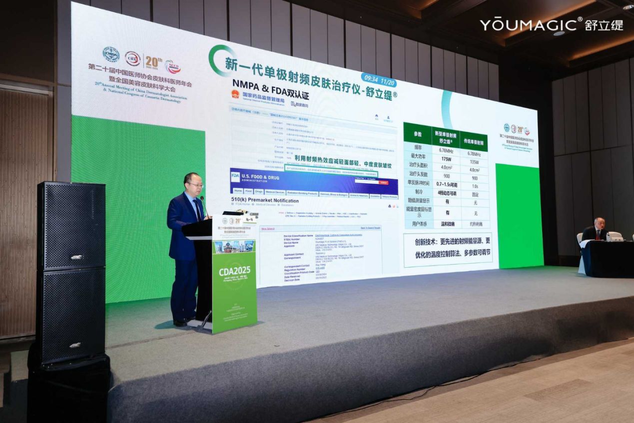 11月6-9日,第二十屆中國醫(yī)師協(xié)會皮膚科醫(yī)師年會暨全國美容皮膚科學(xué)大會(CDA2025)在重慶盛大召開,作為國內(nèi)皮膚科領(lǐng)域的頂級學(xué)術(shù)盛會,吸引了眾多醫(yī)學(xué)專家、科研學(xué)者及從業(yè)者齊聚。YOUMAGIC舒立緹亮相大會,通過科技感拉滿的展位全方位展現(xiàn)“清華基因+醫(yī)研融合”的技術(shù)創(chuàng)新實力,更以“新一代單極射頻抗衰創(chuàng)新峰會”與四場技術(shù)創(chuàng)新小課堂雙線發(fā)力,展示專業(yè)底蘊與技術(shù)深度,贏得行業(yè)廣泛關(guān)注。