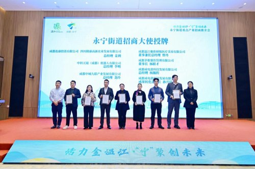 推介會上,永寧街道為首批7名招商大使授牌。據(jù)介紹,首批招商大使集結(jié)裝備制造、電子信息、現(xiàn)代農(nóng)業(yè)、現(xiàn)代服務(wù)業(yè)等多領(lǐng)域人才,他們將面向各自領(lǐng)域,向外推介、向內(nèi)引薦,共同助力永寧發(fā)展。