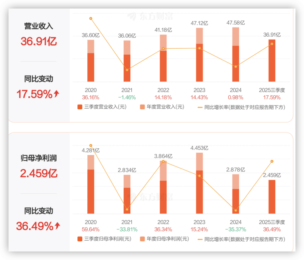 其中,第三季度實現(xiàn)營收11.56億元,同比增加14.73%,歸母凈利潤更是大增113.16%。利潤增速快于收入,處于歷史上的較高水準。有增速,更有質(zhì)量。
