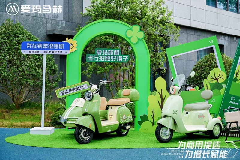 瞄準(zhǔn)景區(qū)、文旅目的地的分時(shí)租賃需求,愛瑪馬赫打造了旅游租賃專屬系列。該系列以“萌趣設(shè)計(jì)+智能便捷+定制賦能”為核心亮點(diǎn),發(fā)布會(huì)現(xiàn)場(chǎng),愛瑪還搭建了“黃油小熊”主題的視覺設(shè)計(jì),打造自帶社交屬性的拍照打卡裝備,配合“我在銅梁很想你”等場(chǎng)景化傳播元素,精準(zhǔn)契合年輕游客的出行分享需求。