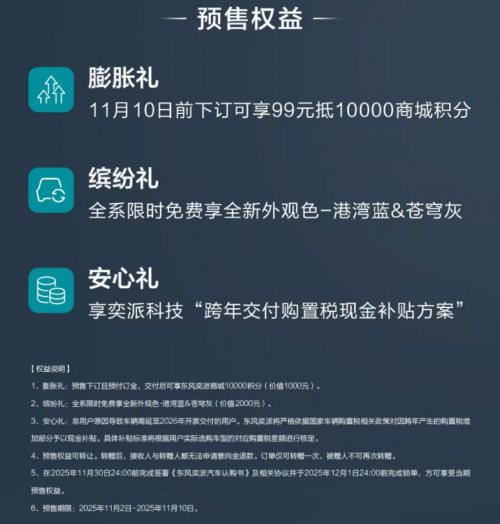 對(duì)于首次購(gòu)車(chē)的年輕人而言,eπ007+提供了一個(gè)“一步到位”的選擇:既能滿(mǎn)足日常通勤與經(jīng)濟(jì)性需求,也能在智能體驗(yàn)與駕駛樂(lè)趣上帶來(lái)驚喜。據(jù)悉,該車(chē)已于2025年11月開(kāi)啟預(yù)售,預(yù)售權(quán)益包括限時(shí)顏色免費(fèi)升級(jí)、購(gòu)置稅補(bǔ)貼等,感興趣的用戶(hù)可進(jìn)一步關(guān)注官方發(fā)布信息或預(yù)約實(shí)地試駕。