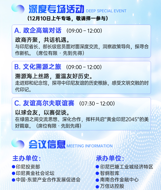 盛會(huì)席位有限,立即行動(dòng),與我們共同執(zhí)筆,描繪中印尼合作更加璀璨的明天!