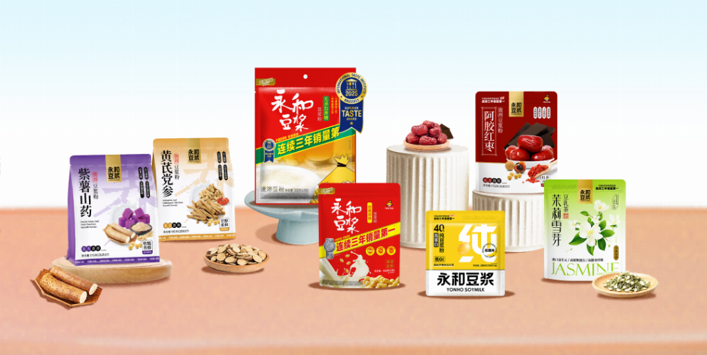 永和豆?jié){旗下產(chǎn)品線包括商用豆?jié){粉、即飲豆?jié){、經(jīng)典系列,并進一步細分為滿足年輕人口味好奇心的風味系列(如錫蘭紅茶風味、茉莉雪芽豆乳茶),以及契合當下“輕養(yǎng)生”趨勢的食養(yǎng)系列(如阿膠紅棗、紅豆薏米豆?jié){粉)。這種布局,遠超傳統(tǒng)意義上“一杯豆?jié){”的范疇,形成了一套針對校園市場的“組合策略”:既能滿足食堂大眾餐飲對效率和標準化的需求;也能通過風味創(chuàng)新吸引追求個性的年輕學生;同時在功能上細分產(chǎn)品,貼合日益增長的健康訴求。