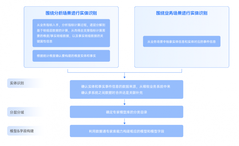 與傳統(tǒng)“大而全”的模型先行不同,數(shù)據(jù)通倡導(dǎo)從核心場景切入,邊使用邊完善知識庫。
