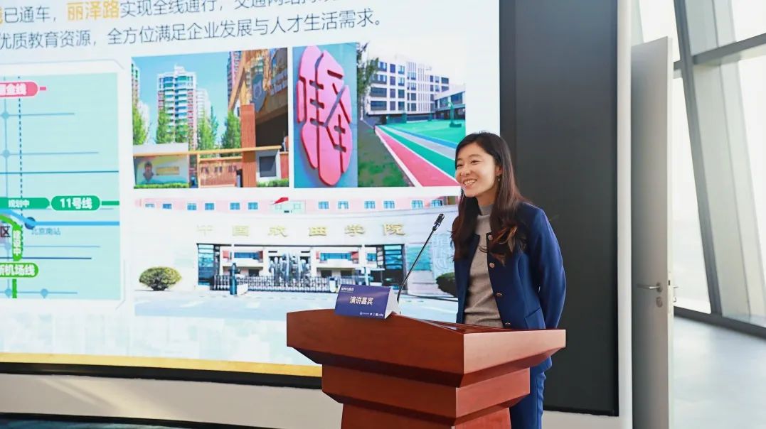 活動伊始,麗澤商務(wù)區(qū)管委會副主任趙倩作為主辦方代表致辭,聚焦麗澤商務(wù)區(qū)的產(chǎn)業(yè)定位與政策內(nèi)容,闡述了商務(wù)區(qū)的政策優(yōu)勢、區(qū)位優(yōu)勢、配套優(yōu)勢,為企業(yè)跨界融合提供了堅實的保障。