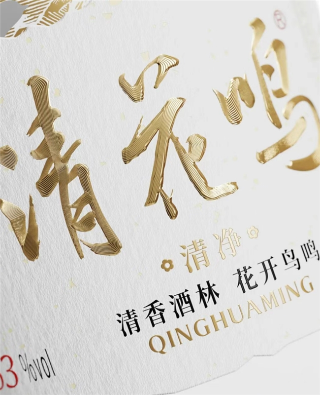 為此,柏星龍以“白酒里的一股清流”為核心理念,致力于打造一瓶能訴說(shuō)自然語(yǔ)言的“清花鳴”。在視覺(jué)設(shè)計(jì)上,柏星龍打造了“花開(kāi)鳥(niǎo)鳴”記憶錘:瓶標(biāo)和細(xì)節(jié)元素提煉自清花鳴原產(chǎn)地生態(tài),將杏花與飛燕融入瓶身設(shè)計(jì),落花形成獨(dú)特水紋視覺(jué),再現(xiàn)產(chǎn)品生態(tài)感,讓消費(fèi)者從接觸產(chǎn)品的第一瞬間,就能感受到“清香酒林,花開(kāi)鳥(niǎo)鳴”的氛圍。在標(biāo)簽細(xì)節(jié)上,瓶身筆觸勾勒“地缸發(fā)酵、緩火蒸餾、陶缸儲(chǔ)存”的傳統(tǒng)釀造場(chǎng)景,背面插畫(huà)采用版畫(huà)風(fēng)格,傳統(tǒng)釀造底蘊(yùn)躍然眼前,形成文化與產(chǎn)品的深度對(duì)話。
