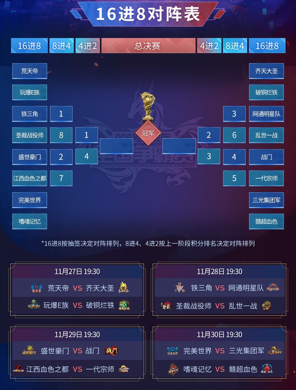 996傳奇家族全國爭霸賽的賽程從11月27日開啟,戰(zhàn)火持續(xù)燃燒,各大家族為榮譽而戰(zhàn)、為情義而拼,共有16支頂尖家族戰(zhàn)隊從眾多參賽隊伍中脫穎而出,躋身16強淘汰賽階段。他們分別是:贛超血色、荒天帝、江西血色之都、亂世一戰(zhàn)、破銅爛鐵、齊天大圣、三光集團軍、圣裁戰(zhàn)役師、盛世豪門、嗜魂記憶、鐵三角、完美世界、玩爆E族、網通明星隊、一代宗師、戰(zhàn)門皇城。每一個名字背后,都是一段傳奇故事,都是一群為榮譽集結的熱血兄弟。