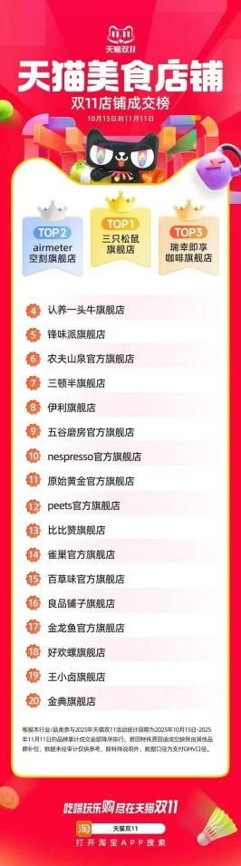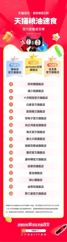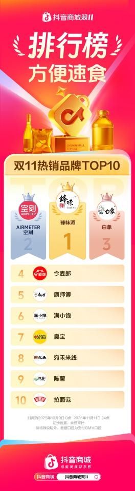 在剛落下落幕的雙十一電商大促中,西餐速食領(lǐng)軍品牌空刻再次展現(xiàn)強勁增長:全周期全平臺銷售額沖破2億元大關(guān),連續(xù)6年蟬聯(lián)天貓、抖音、京東意大利面類目TOP1!并摘得天貓糧油速食類目TOP1、抖音方便速食類目TOP2。值得一提的是,此次空刻憑借西餐速食品類身份,成功躍居天貓美食店鋪成交榜TOP2,與零食、咖啡等高復(fù)購快消品并肩而立,不僅彰顯了品類領(lǐng)先地位,更印證了品牌戰(zhàn)略布局的前瞻與高效。