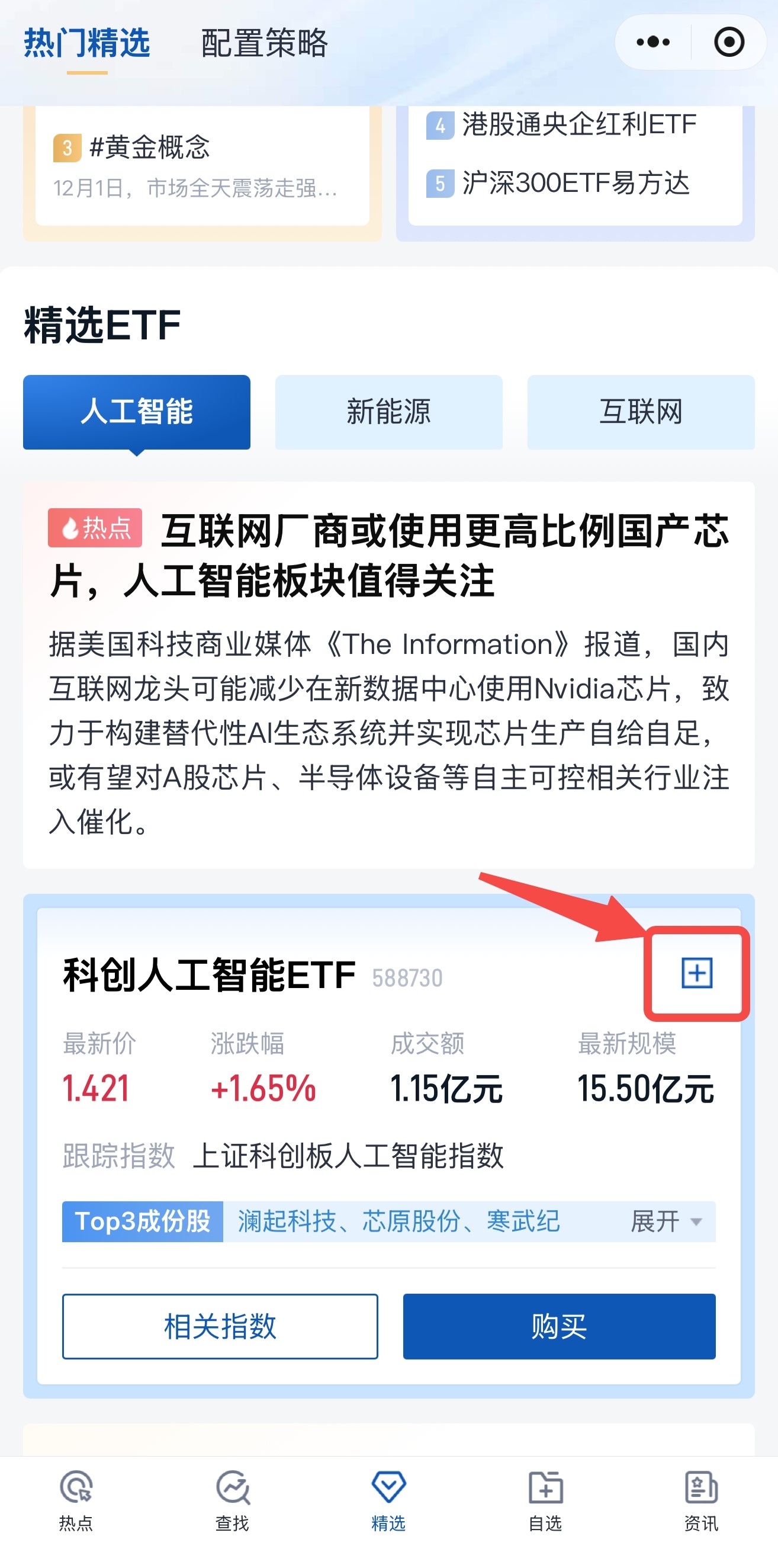 此外,在精選專區(qū)瀏覽熱門精選和配置策略的產(chǎn)品時(shí),也可直接將產(chǎn)品添加到自選列表。