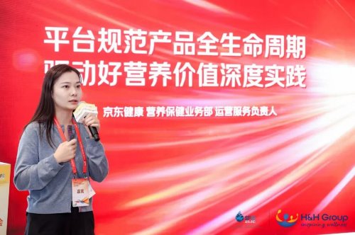 電商平臺(tái)作為連接企業(yè)與消費(fèi)者的核心紐帶,扮演著優(yōu)選好產(chǎn)品的重要角色。王馨然女士圍繞《平臺(tái)規(guī)范產(chǎn)品全生命周期,驅(qū)動(dòng)好營(yíng)養(yǎng)價(jià)值深度實(shí)踐》主題進(jìn)行了解讀。她介紹道:線上平臺(tái)已成為驅(qū)動(dòng)營(yíng)養(yǎng)保健市場(chǎng)增長(zhǎng)的核心引擎,通過(guò)構(gòu)建“京東好營(yíng)養(yǎng)”標(biāo)準(zhǔn)體系,京東健康攜手權(quán)威機(jī)構(gòu)與知名品牌,建立了從品質(zhì)篩選、認(rèn)證打標(biāo)到持續(xù)抽檢的閉環(huán)機(jī)制。