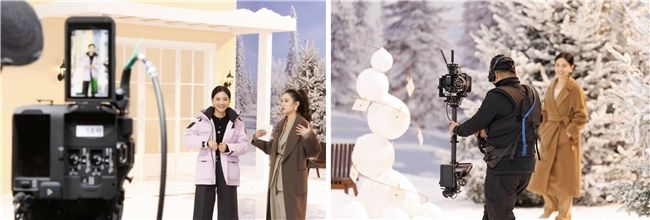 為生動(dòng)詮釋“冬境暖意、百變可能”的直播主題,星拍檔團(tuán)隊(duì)在2000平的超大場(chǎng)地內(nèi),搭建了咖啡廳、室外雪景以及居家空間三大特色場(chǎng)景。胡可與助播、模特團(tuán)隊(duì)從室外雪景走進(jìn)咖啡廳演繹暖冬潮流,隨后轉(zhuǎn)場(chǎng)至溫馨居家場(chǎng)景開(kāi)展產(chǎn)品講解,六小時(shí)不間斷的直播中,場(chǎng)景切換自然流暢,每一幀畫(huà)面皆如時(shí)尚大片般兼具質(zhì)感與美感。